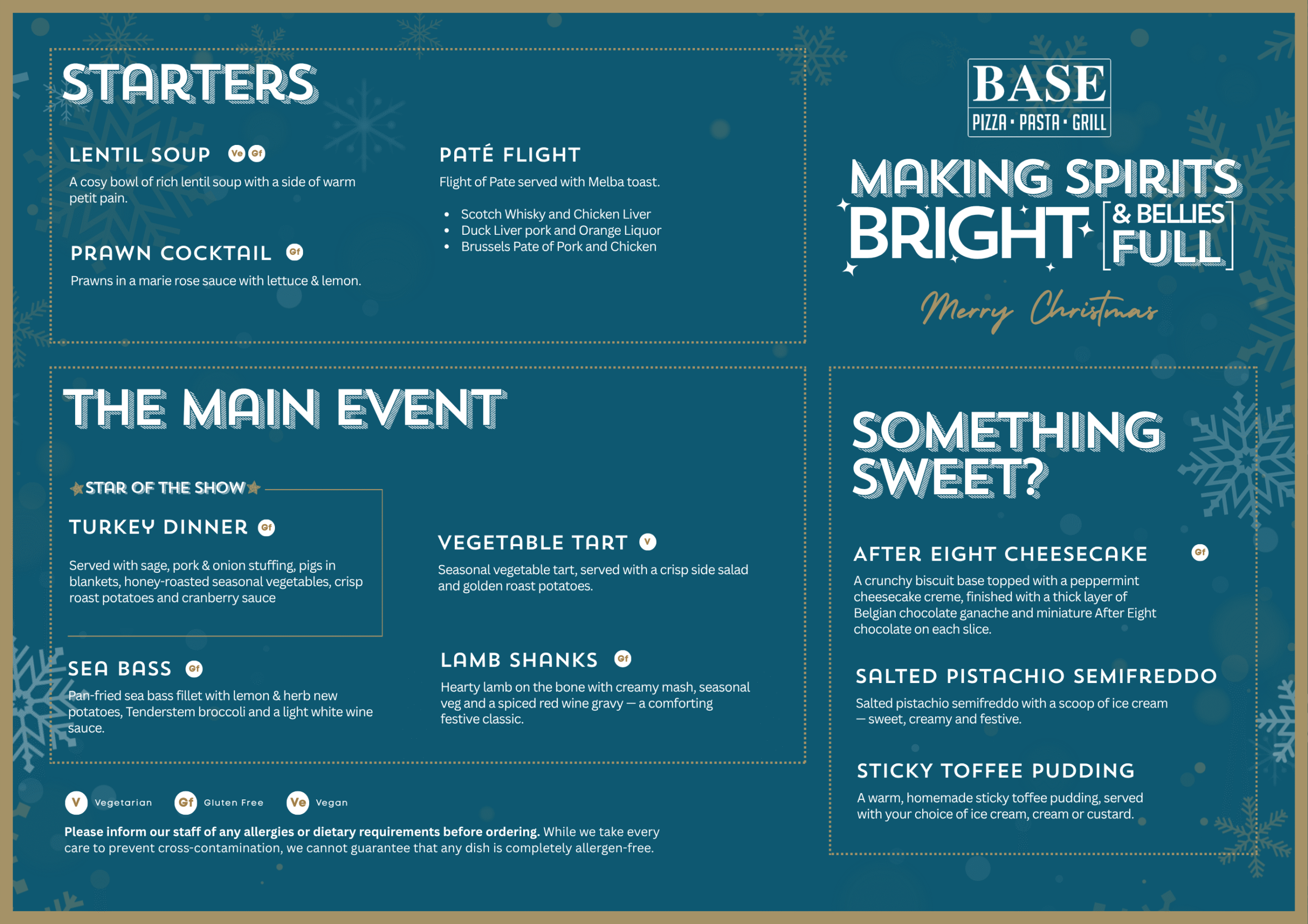 Join us for a delicious festive dining experience filled with all your Christmas favourites, from our hearty turkey dinner and indulgent desserts to a glass (or two) of something bubbly.